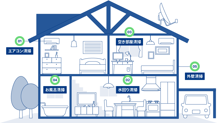 ご自身での清掃が難しい箇所を中心にトータルサポートいたします。